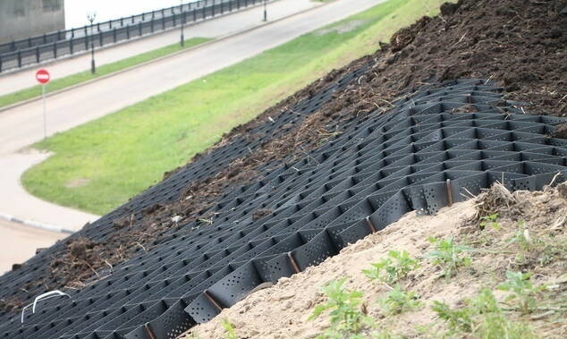 Полимерные георешетки объемные - это материал, предназначенный для защиты склонов от водно-ветровой эрозии. Изготавливается из термопластичных полиэтиленовых лент путем ультразвуковой сварки. Ленты могут иметь текстурированную поверхность для улучшения сцепления материала с грунтом, а также перфорации для улучшения дренирующей способности. -